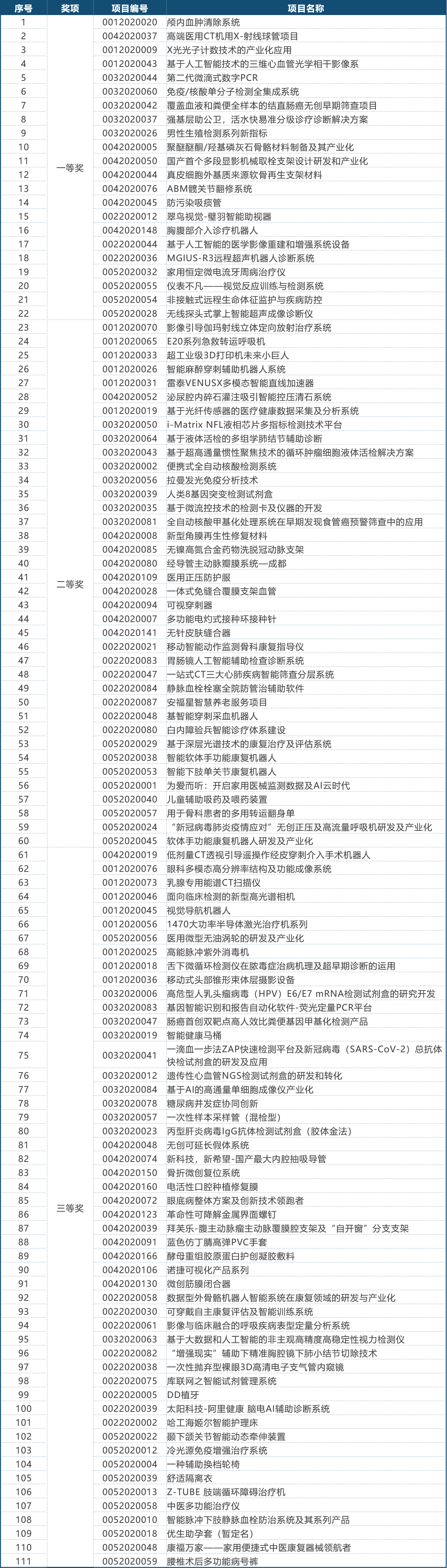 第三届(2020)中国医疗器械创新网创业大赛决赛获奖名单